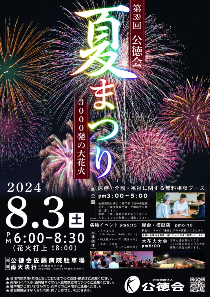 当法人の地域貢献事業の柱でもある「公徳会夏祭り」ですが、今年も下記内容で開催する事となりました。