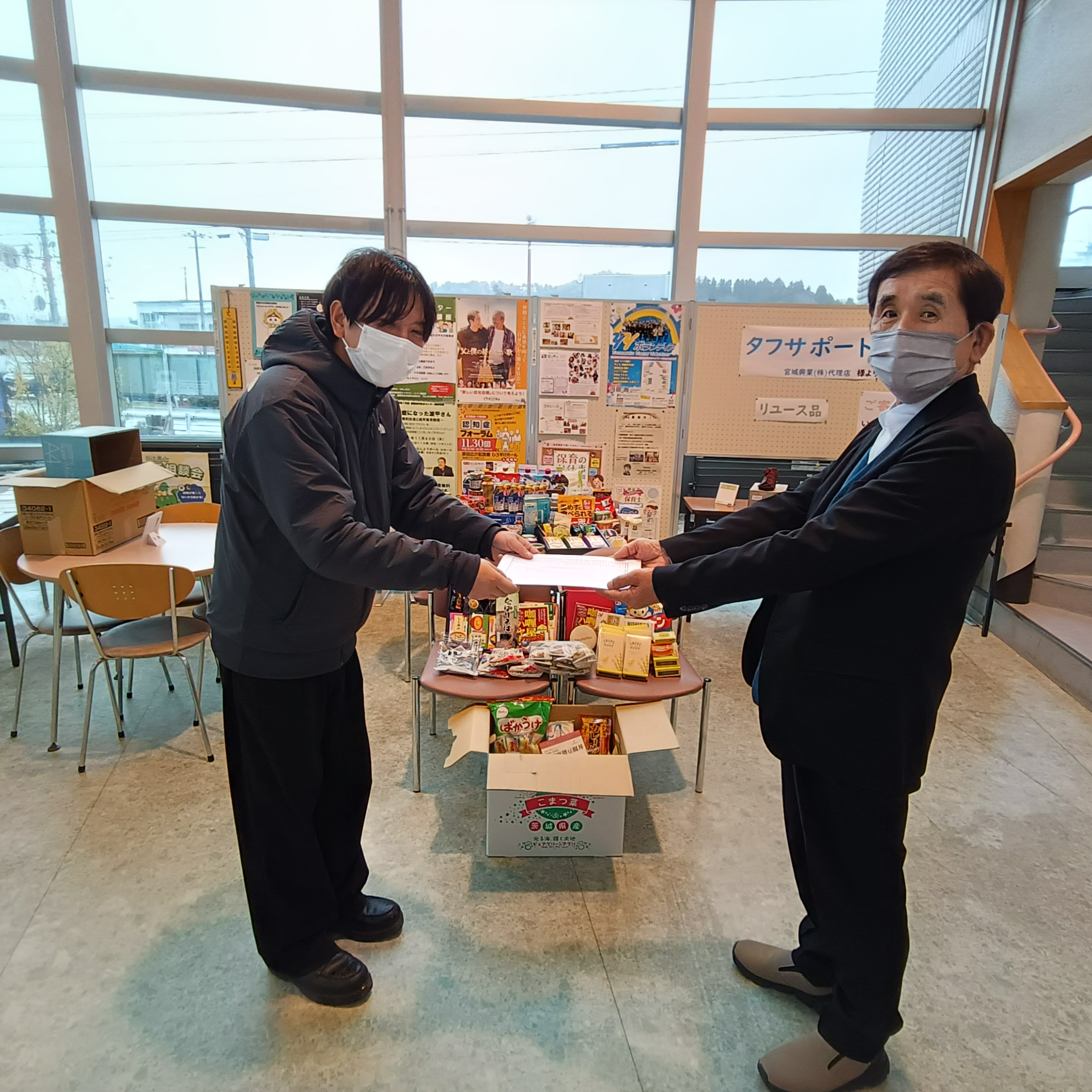 昨年に引き続き、今年も法人内でフードドライブ活動を行い、集まった食品200点は南陽市社会福祉協議会へ令和7年11月17日に寄付させていただきました。